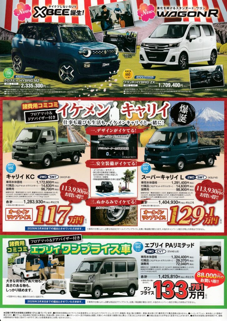 フロアマット、ドアバイザー付き、エブリイ ワンプライス車も登場!